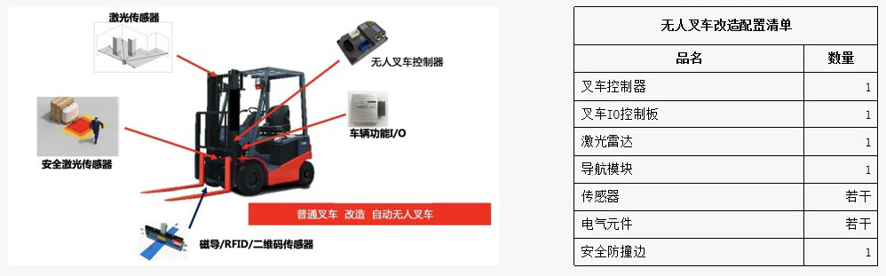 我公司可以为主机厂、系统集成商和最终工厂用户提供整体改装方案,用于自动标准叉车和自动导引车,快速实现无人叉车产品。
